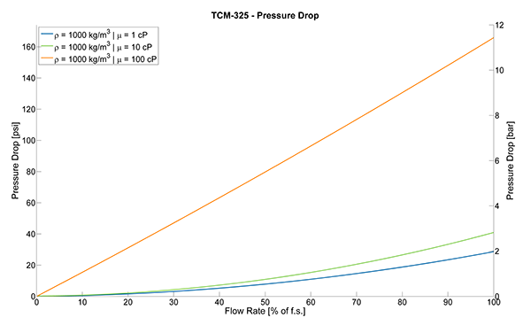 TRICOR PRO TCMP0325科氏力流量計包含了密度測量和質(zhì)量流量測量的功能,其質(zhì)量流量為325公斤/小時(12磅/分鐘)或49bbl/天,標(biāo)稱管道尺寸為DN4(1/8″),可以提供本地測量輸出的密度值、質(zhì)量流量、過程溫度、體積流量、累積質(zhì)量流量和累積體積流量。該儀表的精度為0.1%,耐壓可高達(dá)200bar(2900 psi)。該儀表采用數(shù)字信號處理變送器(DSP),可提供現(xiàn)代化的HMI接口,具有數(shù)據(jù)記錄功能和自診斷功能。每一臺科氏流量計都經(jīng)過了機械平衡測試,以確保密度測量功能和整體性能。