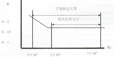 由上式可見,VSF輸出的脈沖頻率信號不受流體物性和組分變化的影響,即儀表系數(shù)在雷諾數(shù)范圍內(nèi)僅與旋渦發(fā)生體及管道的形狀尺寸等有關。但是作為流量計在物料平衡及能源計量中需檢測質(zhì)量流量,這時流量計的輸出信號應同時監(jiān)測體積流量和流體密度,流體物性和組分對流量計量還是有直接影響的。